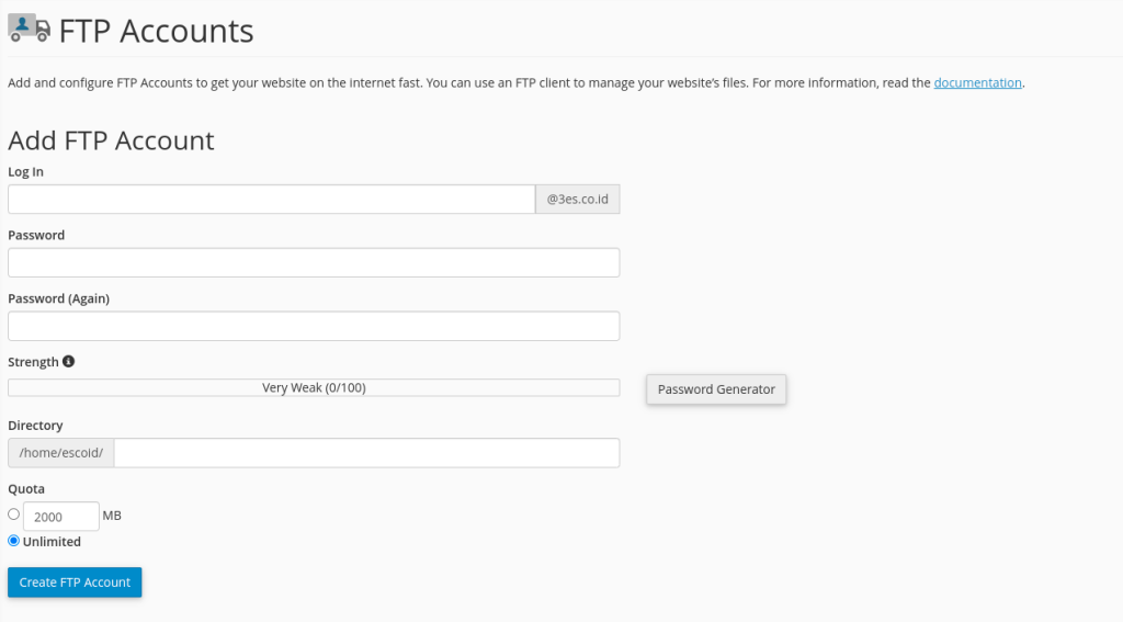 FTP Account memungkinkan Anda untuk mengakses file situs web Anda melalui protokol FTP.