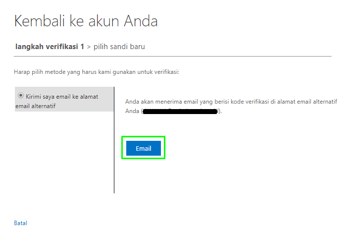4. Selanjutnya klik “Email” untuk mengirimkan kode verifikasi password baru ke email alternatif. Email ini biasanya sama dengan info email di akun portal client area