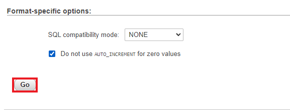 4. Pilih Quick untuk Export Method dan SQL untuk Format. Lalu, klik Export.