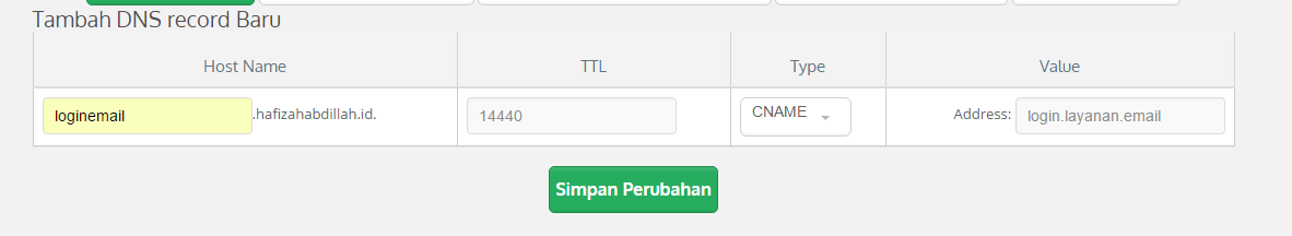 6. Masukkan subdomain sesuai keinginan kita di bagian Host Name. Misalnya loginemail.
