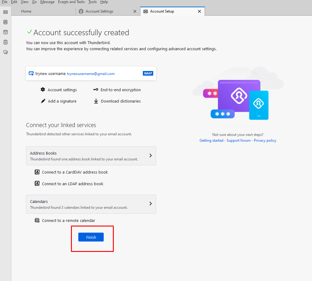 8.  Lalu akan muncul informasi account telah berhasil dibuat silakan dapat klik Finish
