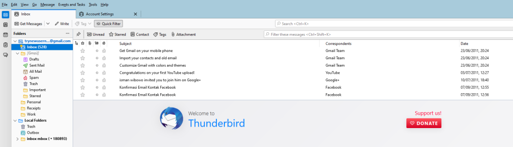 Berikut tahapan Cara menghubungkan Gmail ke Thunderbird :