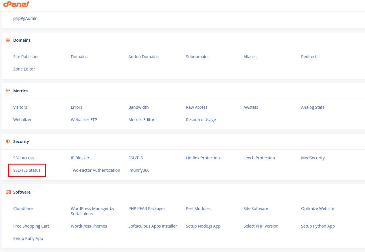 2. Jika sudah berhasil login ke halaman cPanel hosting silakan masuk ke menu SSL/TLS Status