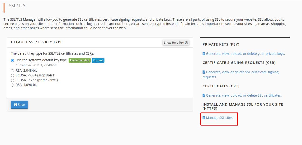 Lalu kita bisas pilih menu Manage SSL Site ya