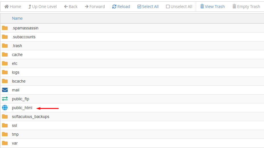 3. Masuk ke Direktori website yang akan disesuaikan permisiionya (public_html)