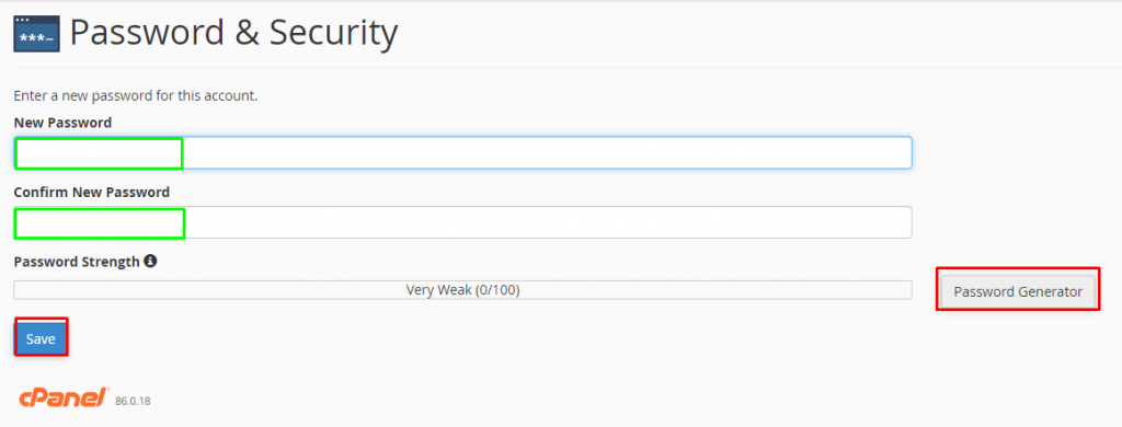 dan masukan password barunya dikolom “New Password” dan “Confirm New Passwords” atau bisa dengan mengklik “Generate ” lalu save