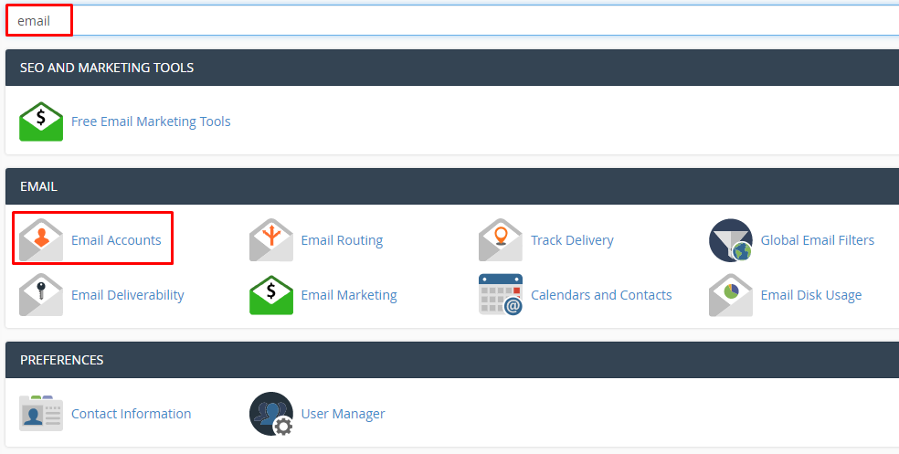 2. Search di kolom pencarian dengan keyword “Email” atau langsung mencari menu “Account Emails”