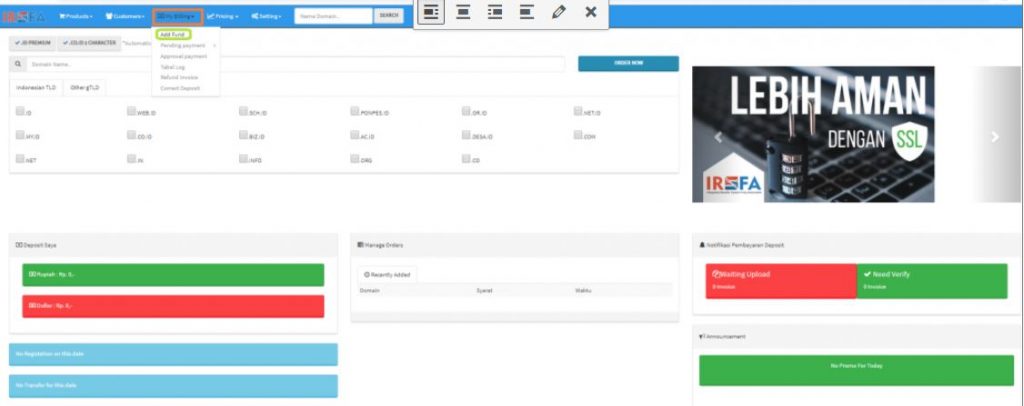 Nah, di tutorial ini kami akan menjelaskan cara melakukan pendaftaran menjadi reseller domain di IRSFA