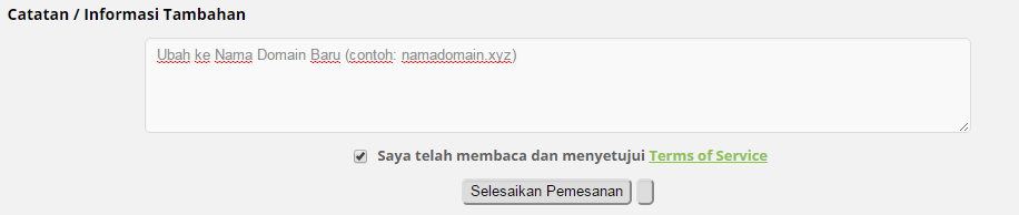 6. Isi Nama Domain Baru anda di Kotak Catatan/Informasi Tambahan