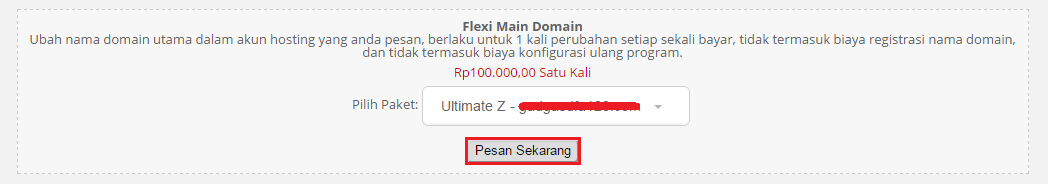 3. Di Bagian Flexi Main Domain, Pilih Hosting yang ingin diubah nama domain utamanya
