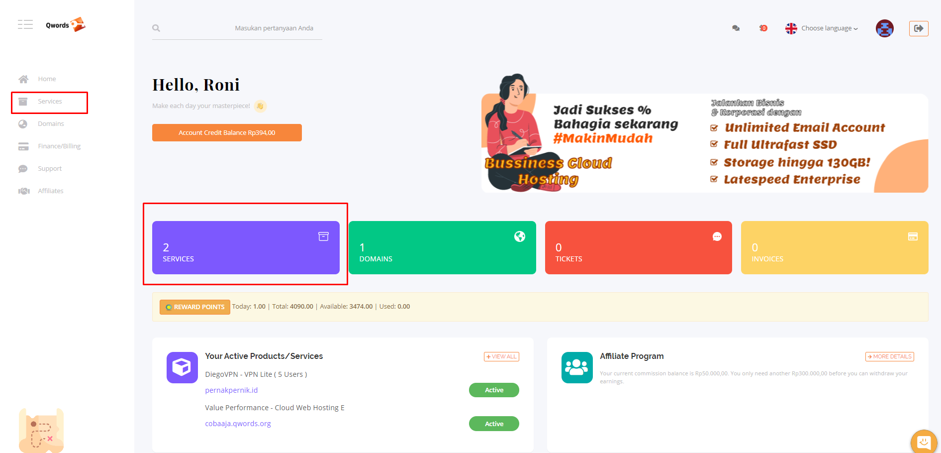 Kita masih bisa mengubah termin layanan hosting, kok. Sahabat Qwords hanya perlu masuk ke Portal Qwords dan ubah termin pada layanan hosting yang kita inginkan.