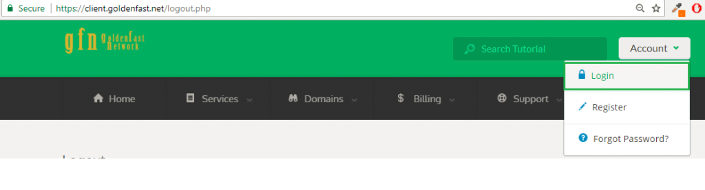 1. Login terlebih dahulu ke akun portal goldenfast melalui client.goldenfast.net , silakan input email dan password yang sesuai.