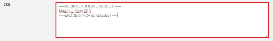 5. Masukan CSR yang telah anda buat ke Kotak CSR