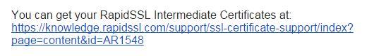 16. Jangan tutup dulu halaman SSL/TLS Manager anda, kembali ke Email bersubjek Order Complete diatas, klik link berjudul Intermediate atau CA Bundle atau Root Certificate, contoh:
