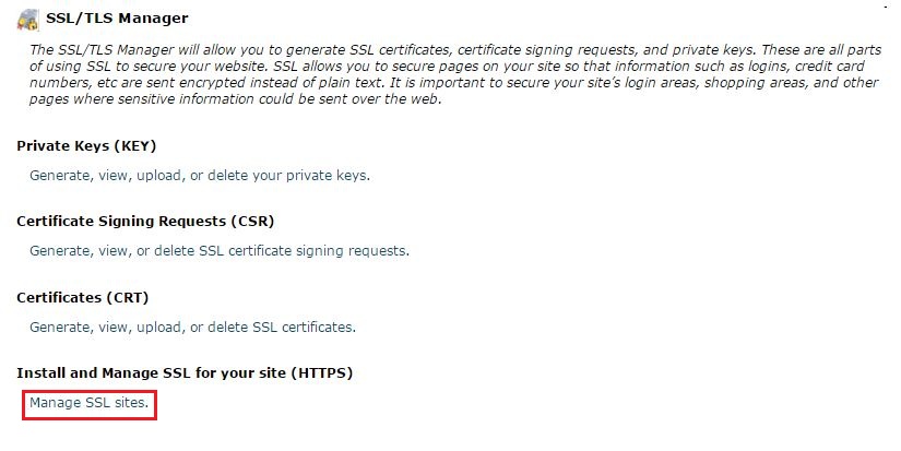 13. Buka Cpanel -> SSL/TLS Manager -> Manage SSL Sites