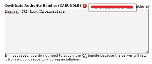 18. Masuk kembali ke halaman SSL/TLS Manager, Paste Intermediate/CA Bundle/Root Certificate ke kotak CABUNDLE