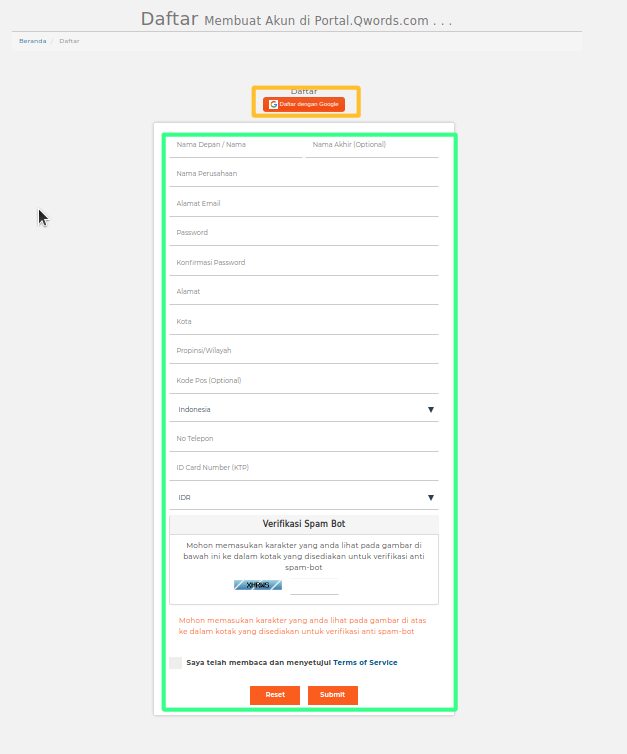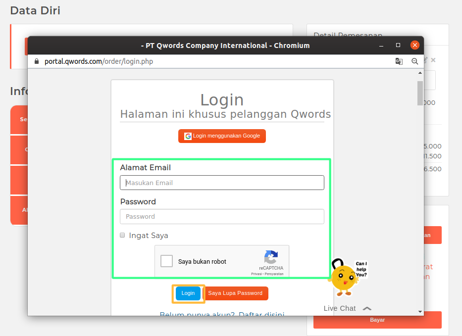 Untuk yang belum memiliki Akun Client Portal, silahkan mengisikan formnya atau daftar dengan akun Google