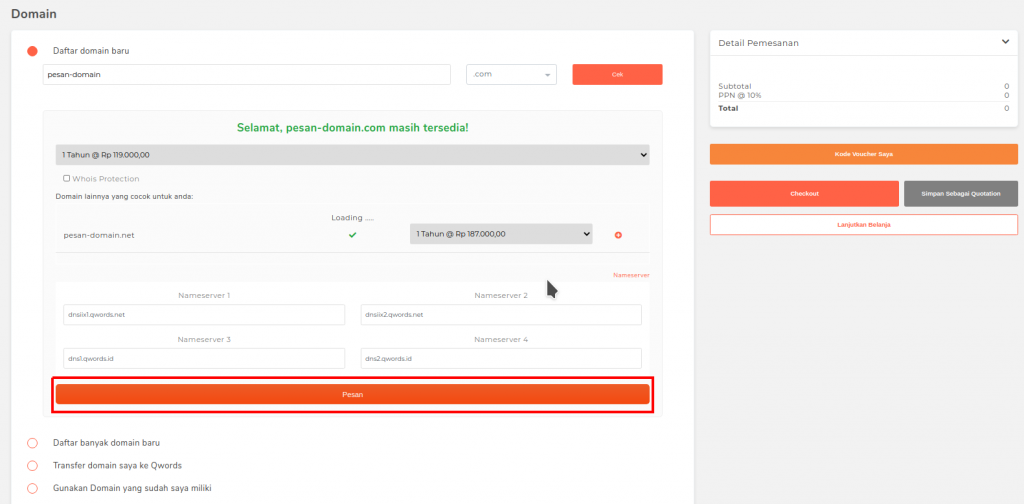 Untuk membeli domainnya bisa langsung memesan via website Qwords ka.