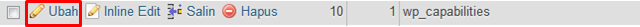 Klik ubah/edit pada tabel “wp-capabilities”.