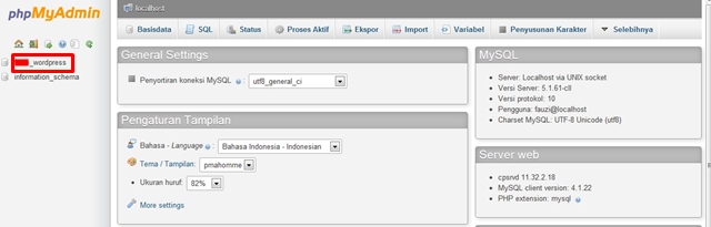 3. Pilih database untuk wordpress anda