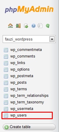 4. Klik “wp_users”