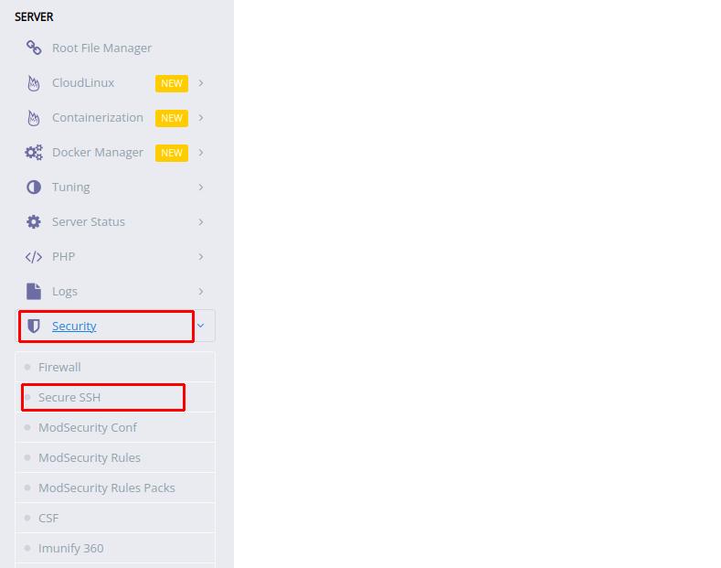 2. Jika sudah berhasil login, silakan masuk ke menu Security >> Secure SSH