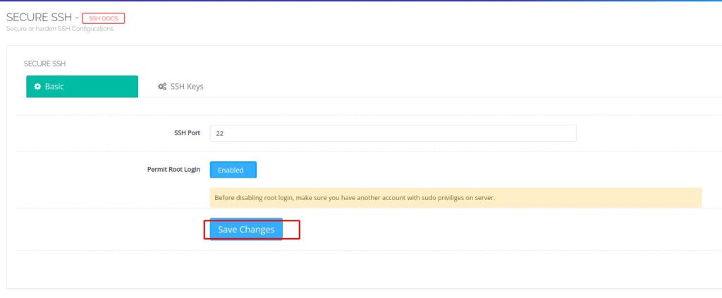 3. Setelah berada pada halaman Secure SSH silakan bisa melakukan perubahan akses port ssh yang diinginkan pada bagian SSH Port, Default port akses ssh adalah 22.
