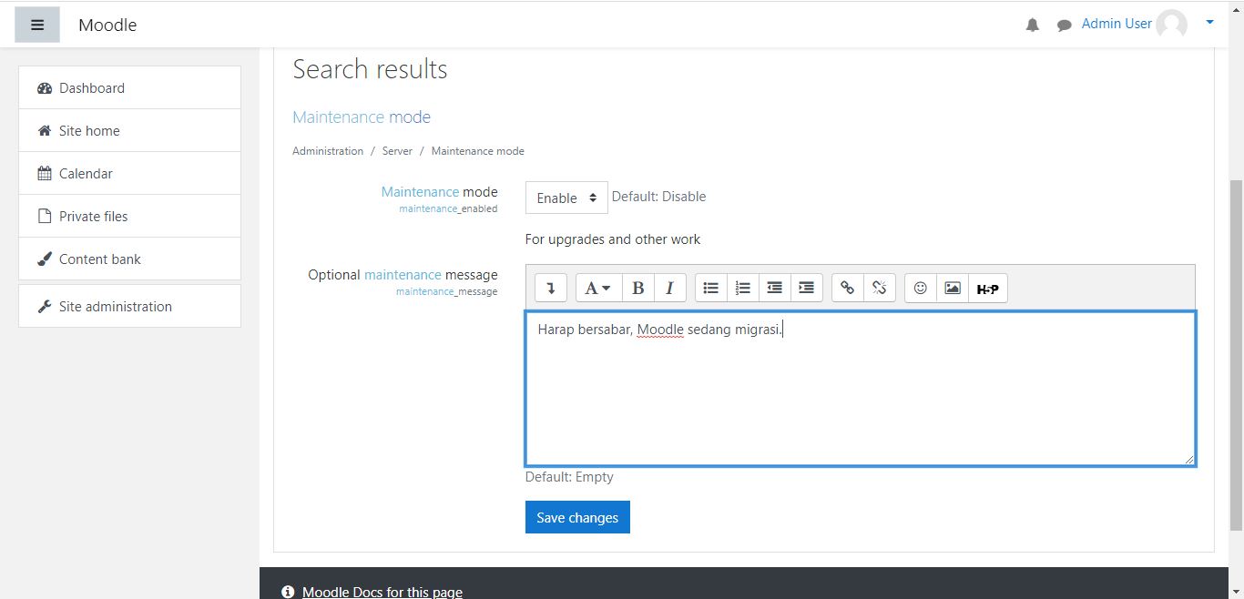 Untuk migrasi antar server, cara pertama yang harus dilakukan adalah mengaktifkan maintenance mode di Moodle.