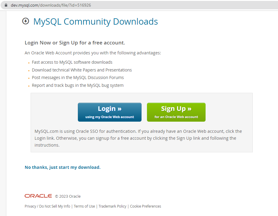 2. Akan muncul permintaan untuk login. Abaikan saja dengan klik No thanks, just start my download.