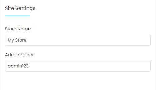 5. Di bagian Site Settings, masukkan nama toko dan admin folder di kolom yang tersedia.
