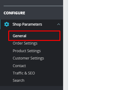 2. Pilih menu General di bagian Shop Parameters di sebelah kiri.