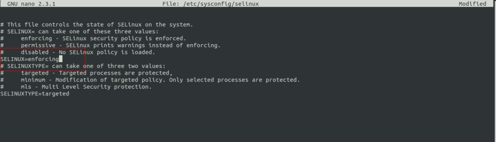nano /etc/sysconfig/selinux