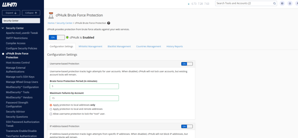 - cPHulk Brute Force Protection