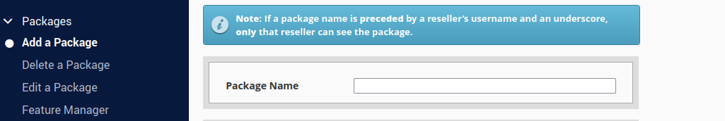 a. Add Packages : Membuat paket hosting berdasarkan fitur dan fasilitas yang akan disediakan pada web hosting