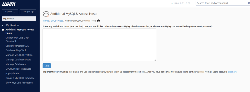 a. Additional MySQL Access Hosts