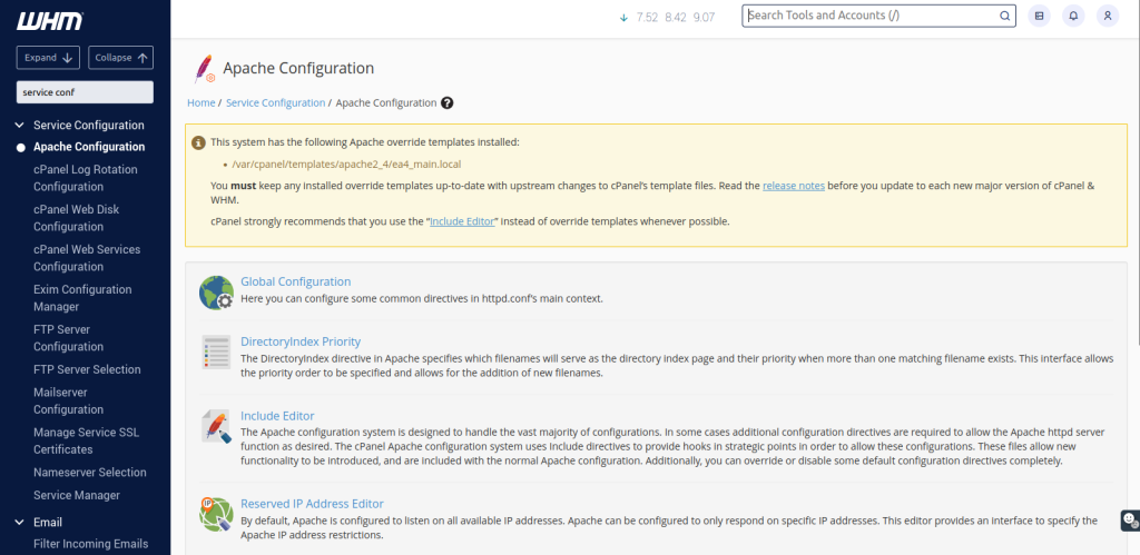 - Apache mod_userdir tweak : mengizinkan user mengakses webnya dengan menambahkan ~ di halaman webnya. Misalnya http://test.nama.domains/~username/ . Pilih disable untuk fitur ini.