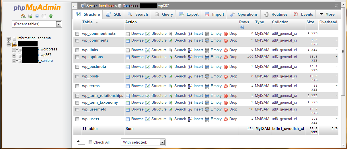 Kemudian, pilih database yang ingin diperbaiki atau dioptimalkan. Contoh, disini saya akan mengoptimalkan dan memperbaiki database _wp867 (klik gambar untuk melihat lebih jelas)