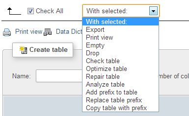 Pada baris paling bawah, terdapat Check All. Centang pilihan tersebut. Setelah itu, pada dropdown disampingnya (With Selected) pilih “Repair Database” jika anda ingin memperbaiki database atau “Optimize Database” jika anda ingin mengoptimalkan database.