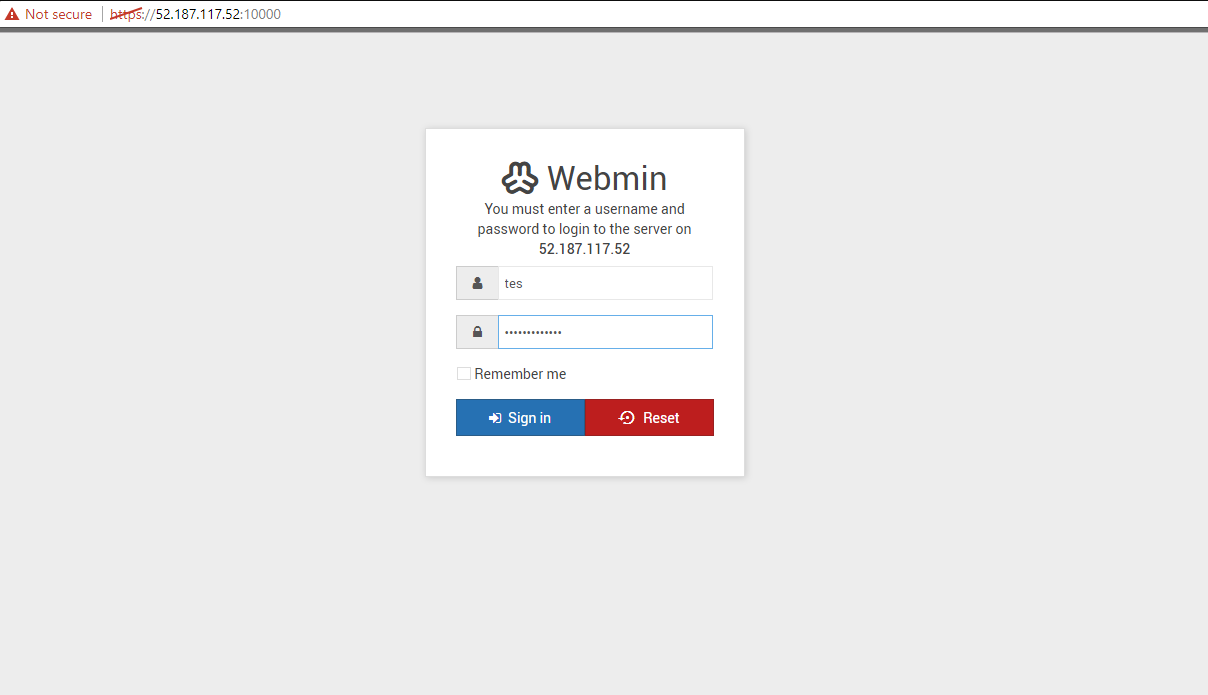Jika instalasi sudah berhasil, silahkan buka browser kalian, dan buka alamat url : https://IPkalian:10000