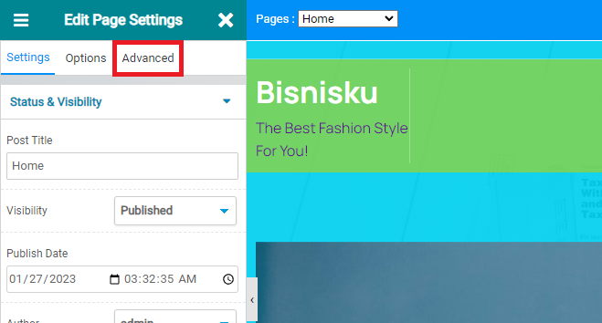 3. Di bagian Edit Page Settings, klik tab Advanced.