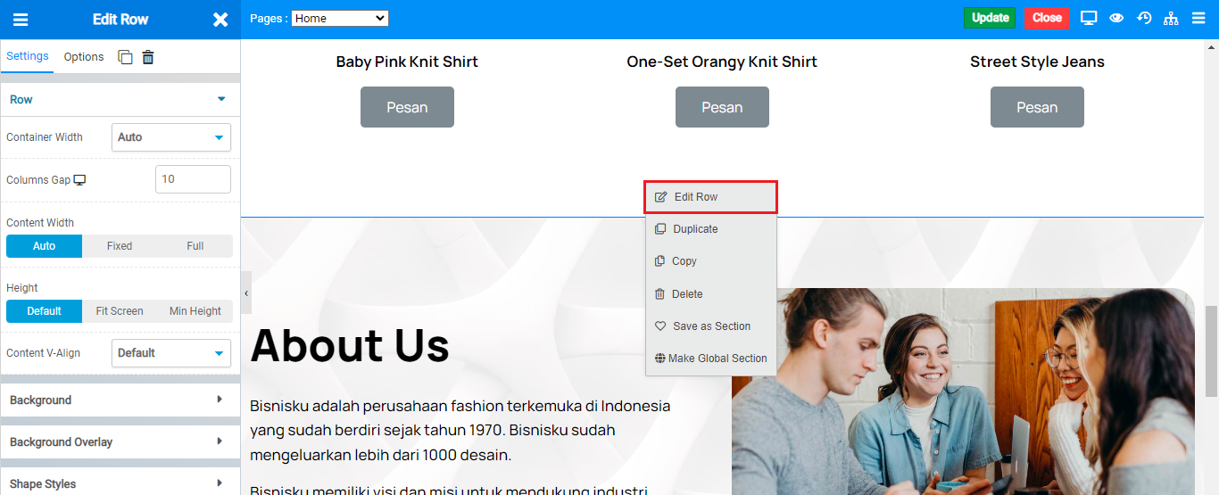 3. Klik kanan pada row atau column yang kita inginkan. Lalu, pilih Edit Row.