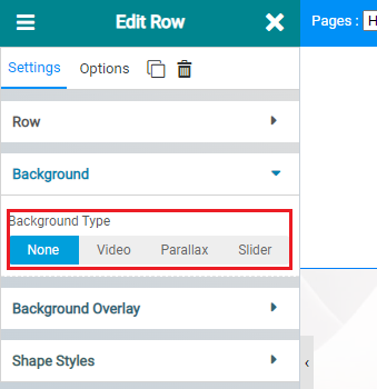 5. Pilih background type yang kita inginkan. Untuk jenis background gambar atau warna, bisa pilih di Background Overlay, ya.