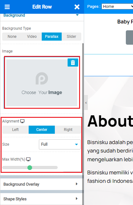 6. Klik Choose Images dan pilih gambar yang kita inginkan. Lalu, atur alignment dan ukuran background sesuai keinginan kita.