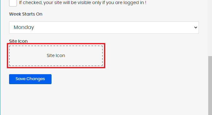 3. Scroll halaman ke bawah sampai ke bagian Site Icon. Lalu, klik kolom Site Icon seperti gambar berikut.