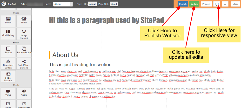 Setelah Anda Selesai Mengedit pekerjaan Anda, Anda dapat Publikasikan Situs Web Anda atau Anda dapat memperbaruinya dan kemudian Memublikasikannya.