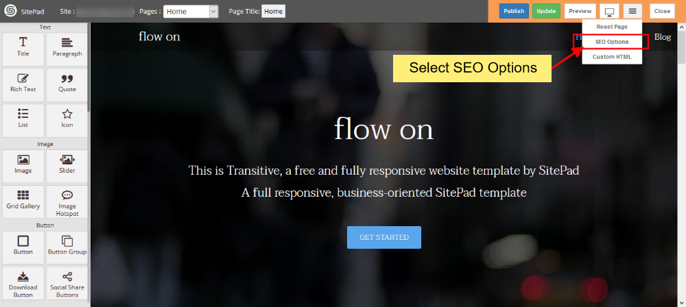 Sebelumnya silahkan akses dashboard Website Builder Sitepad terlebih dahulu, setelah itu akses menu Pages lalu akses menu edit seperti gambar berikut :