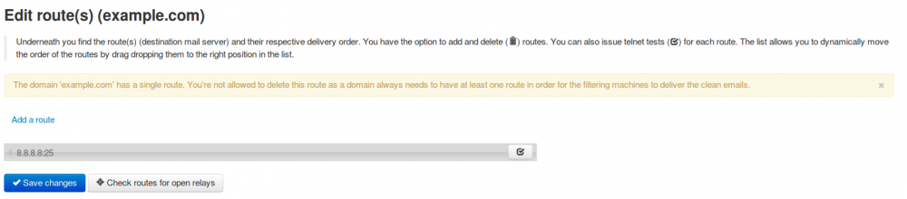 Halaman ini berfungsi jika Anda hendak mengedit rute (email server tujuan) dan urutan pengiriman masing-masing.