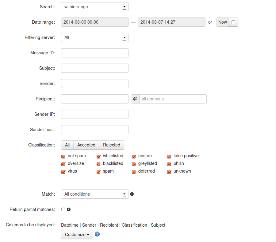 Spam Filter Incoming Log Search