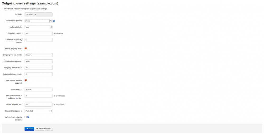 - Automatic lock: Opsi ‘Lock otomatis Enabled’ akan mengunci pengguna dan menghentikan pengguna dari mengirim email lagi ketika SPAM terdeteksi dari pengguna tersebut, administrator akan menerima notifikasi ketika ini terjadi dan memberikan pilihan untuk membuka pengguna tersebut