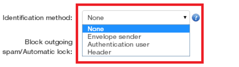 - Identification Method: Di sini Anda dapat memilih antara, “envelope sender”, “otentikasi pengguna” atau “Header” sebagai metode indentifikasi